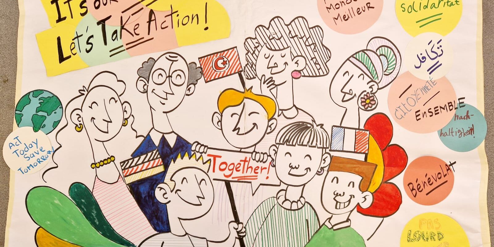 Welche nachhaltigen Veränderungen wünschen wir uns in 30 Jahren? Diese Frage haben sich 29 junge Menschen vom CCAB Sfax, dem Berufskolleg Solingen und dem Sozialzentrum EFOR in Stains während der letzten Phase einer trilateralen Begegnungsreihe zum Thema nachhaltige Entwicklung gemeinsam gestellt. Die Teilnehmer*innen konnten über den Zusammenhang zwischen sozialer Ungleichheit und nachhaltiger Entwicklung diskutieren und debattieren, aber auch über einen möglichen Generationenkonflikt rund um das Thema Ökologie. Gemeinsam haben sie einen Strand in Hammamet gesäubert und auch drei Olivenbäume und einen wilden Maulbeerbaum im Belvedere Garten gepflanzt. Abschließend haben die Teilnehmer*innen eine Zeitkapsel in Anwesenheit von Vertreterinnen der Deutschen Botschaft vergraben. Im Jahr 2054 wollen wir gemeinsam die Zeitkapsel ausgraben, um die aktuellen Wünsche für die Welt in 30 Jahren mit der zukünftigen Realität abzugleichen.